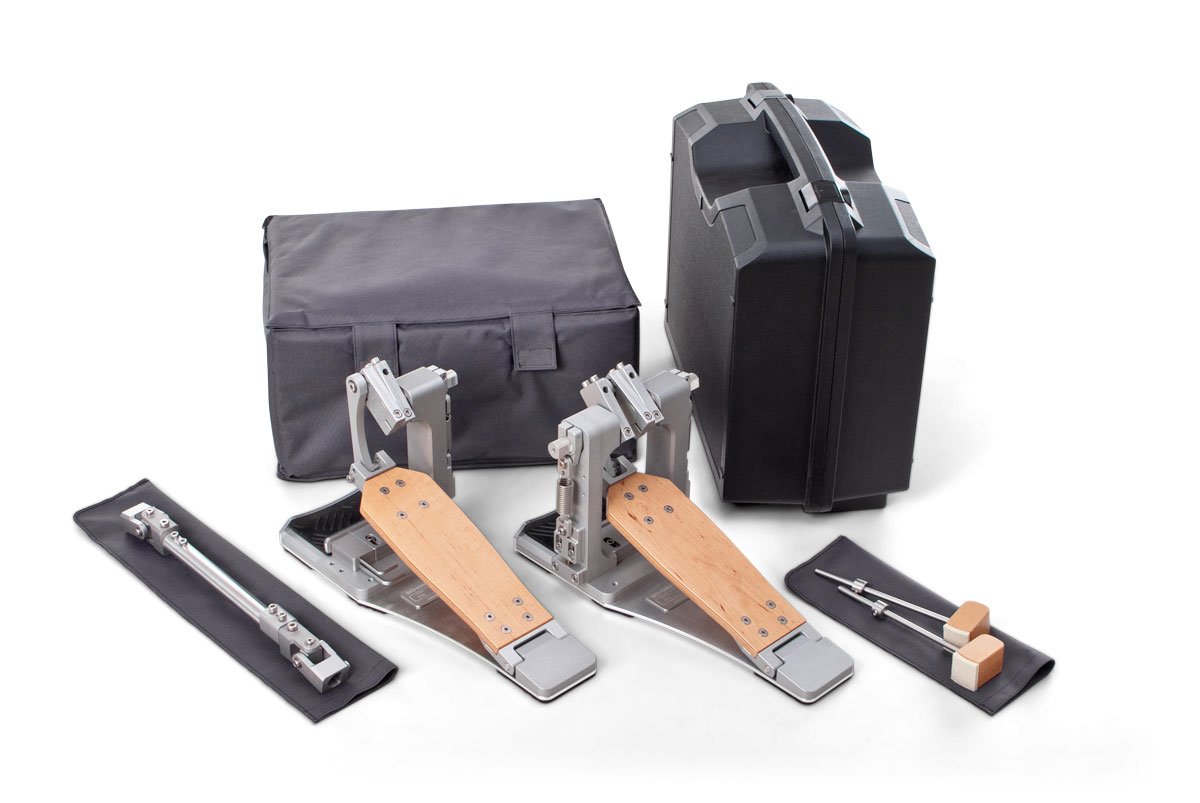 Als Doppelpedal kann das P-16 im Rechts- oder Linkshänder-Aufbau bestellt werden. Zur Auswahl stehen eine Holzfußplatte in Standardlänge mit langem Fersenkeil oder eine 20mm längere Aluminium-Fußplatte mit kurzem Fersenkeil. Bei einem späteren Umbau von Short- auf Longboard oder umgekehrt kann der jeweils vorhandene Fersenkeil beibehalten werden. Die Auslieferung an den Kunden erfolgt im ausgewählten Setup spielfertig voreingestellt.